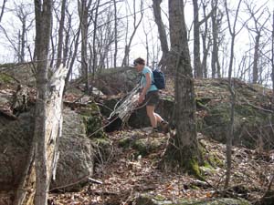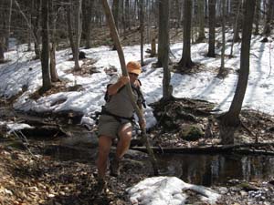 Marc doit faire des acrobaties pour traverser le ruisseau